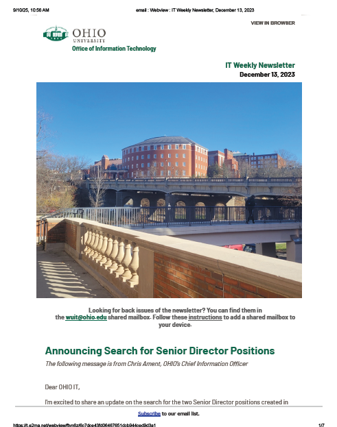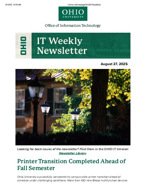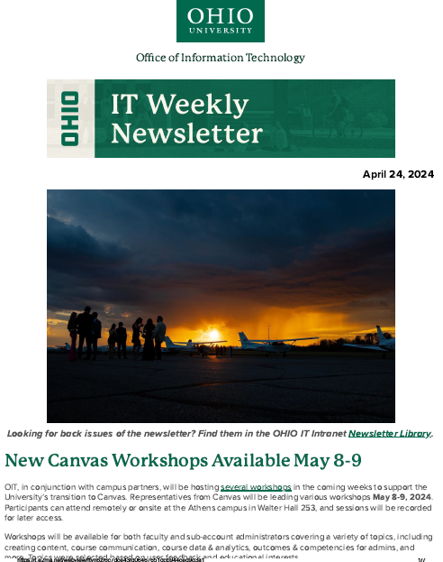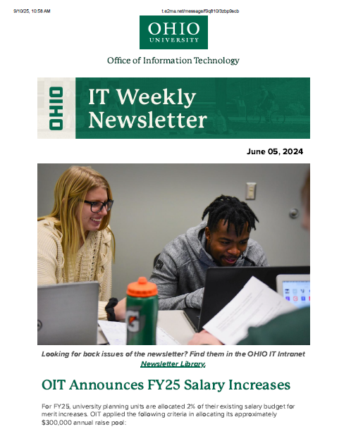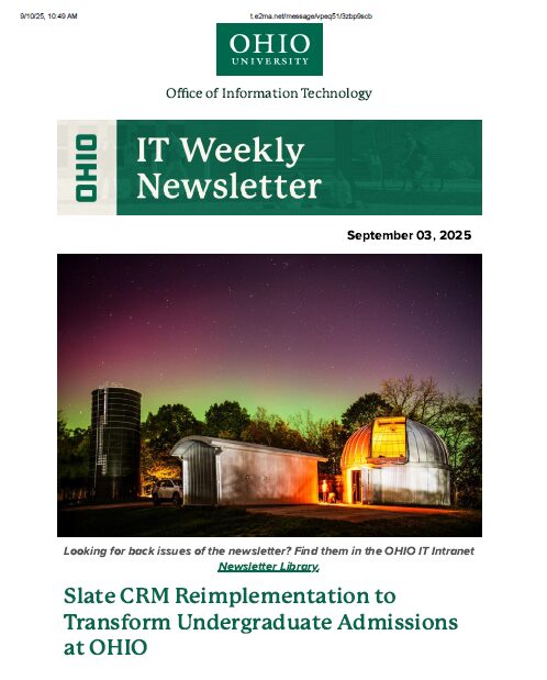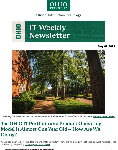 I served as the principle editor and compiler of the IT Weekly Newsletter for Ohio University’s Office of Information Technology. These are a few samples from that publication.